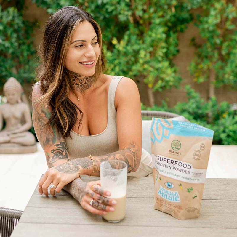 We believe sustainability is not a goal, but a mindset, reflected in our daily choices and actions. We are very ethically conscious at Planet Protein and aim to reduce/eliminate waste every. single. day. Our goal is to actively influence and educate on the importance of a low waste & low impact lifestyle. We’re constantly improving our sustainable practices, always striving to be better. We’ve teamed up with recycling specialists– to ensure that our product packaging has every opportunity to be utilized responsibly. To learn more about our internal recycling program and to start earning ‘Planet Points’ click here! Being conscious about the products you use will contribute to a greener and healthier world for everyone. Not only are our products designed to nourish and elevate you, but are 100% organic, vegan, AND packed full of ingredients that pose no threat to our beautiful planet and all of its inhabitants.